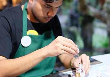 Some guests approached with excitement, blending oils that reflected their energy, while others carefully experimented with soothing notes for balance and relaxation. Smiles, laughter, and sparks of curiosity filled the room as everyone explored scents that spoke to their personality.